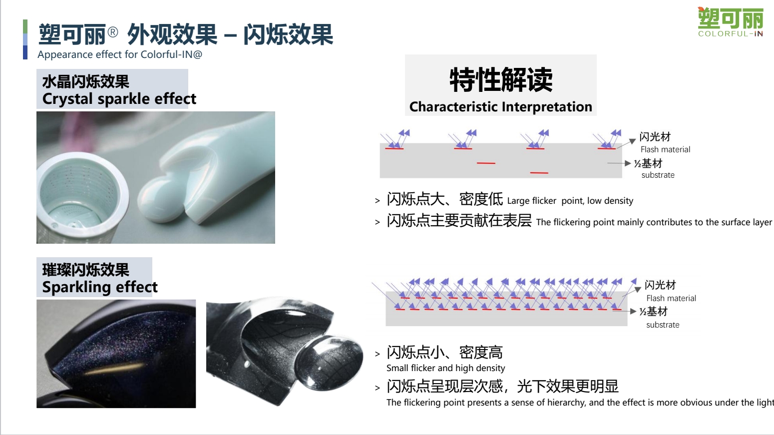 应用于家电领域各类独特外观的美学塑料,以及针对应用场景的创新功能材料。